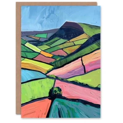 Artery8 Greeting Card Mam Tor Peak District Colourful Oil Painting Blank For Him Or Her Art Birthday