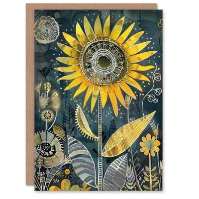 Artery8 Greeting Card Mandala Pattern Orange Blue Sunflower Design Blank For All Him Or Her Art Birthday