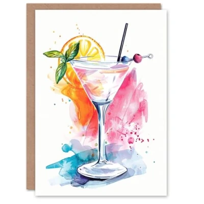 Artery8 Greeting Card Manhattan Cocktail Bright Modern Watercolour Blank For All Him Or Her Art Birthday