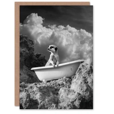 Artery8 Greeting Card Meerkat in Bathtub Surreal Bath Time Black White Blank For Him Or Her Art Birthday