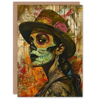 Artery8 Greeting Card Mexican Day of the Dead Portrait Street Art Tattoos Blank For Him Or Her Birthday