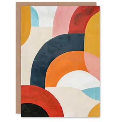 Artery8 Greeting Card Mid Century Modern Retro Rainbow Oil Painting Blank For Him Or Her Art Birthday