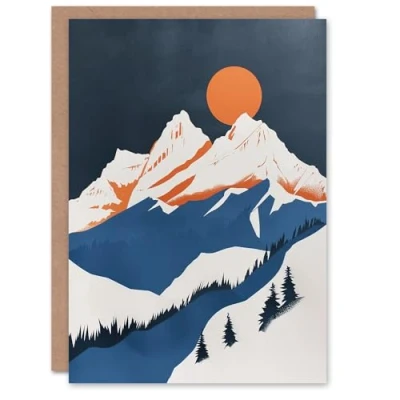 Artery8 Greeting Card Modern Switzerland Winter Mountain Landscape Blank For Him Or Her Art Birthday