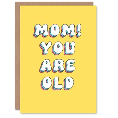 Artery8 Greeting Card Mom You Are Old Simple Bright Retro Yellow For Mum Mummy Birthday