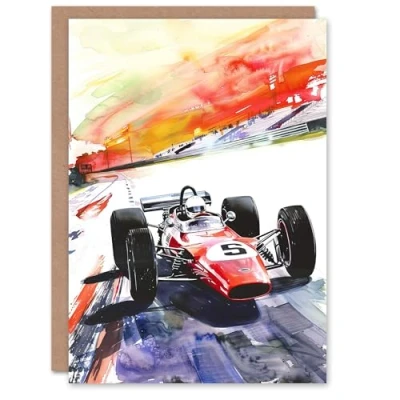 Artery8 Greeting Card Motor Speedway Race Retro Sport Car Watercolour For Him Man Birthday