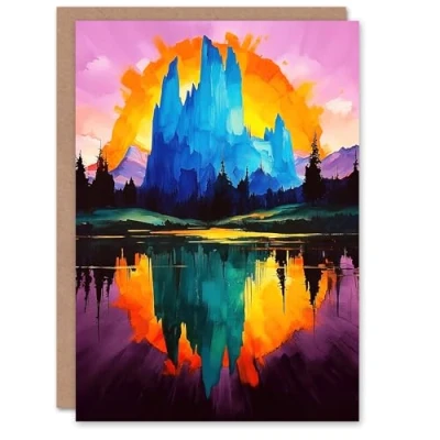 Artery8 Greeting Card Mount Fitz Roy Sunset Colourful Abstract Landscape Blank For Him Or Her Art Birthday