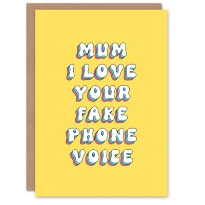 Artery8 Greeting Card Mum I Love Your Fake Phone Voice Retro Yellow For Mummy Mom Birthday