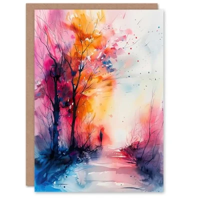 Artery8 Greeting Card Nature Lover Autumn Hike Sunrise Watercolour Blank For Him Or Her Art Birthday