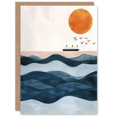 Artery8 Greeting Card Ocean Liner Ship With Seagulls Over Sea Waves Blank For Him Or Her Art Birthday