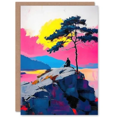Artery8 Greeting Card Old Man Lone Tree Sunset Coastal Cliff Landscape Blank For Him Or Her Art Birthday