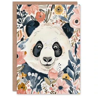 Artery8 Greeting Card Panda Bear Hiding in Spring Flowers Watercolour For Her Woman Birthday
