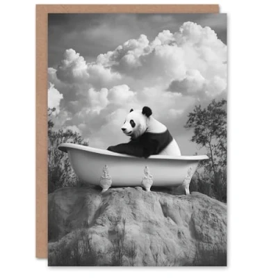 Artery8 Greeting Card Panda Bear in Elegant Bathtub Black White Surreal Blank For Him Or Her Art Birthday