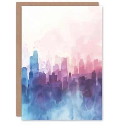 Artery8 Greeting Card Pastel City Skyline Modern Watercolour Soft Light Blank For All Him Or Her Art Birthday