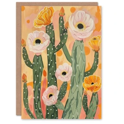 Artery8 Greeting Card Pastel Pink Cactus Flower Blossom Painting Soft For Her Woman Birthday