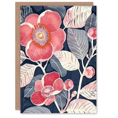 Artery8 Greeting Card Pink Camellia Flowers Blue Foliage Artwork Floral For Her Woman Birthday