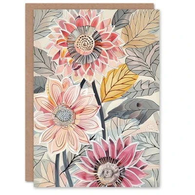 Artery8 Greeting Card Pink Dahlia Flowers Artwork Bright Fresh Floral For Her Woman Birthday