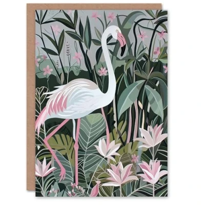 Artery8 Greeting Card Pink Flamingo Lilies Leaves Artwork Tropical For Her Woman Birthday