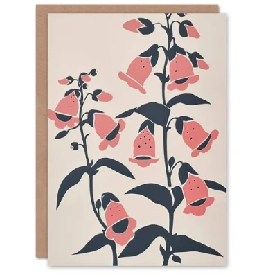 Artery8 Greeting Card Pink Foxglove Flowers Simple Bright Floral Design For Her Woman Birthday