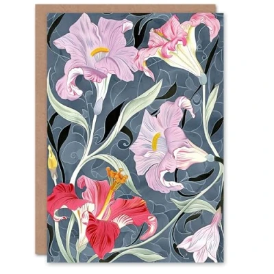 Artery8 Greeting Card Pink Lily Flowers Stylised Detailed Floral For Her Woman Birthday