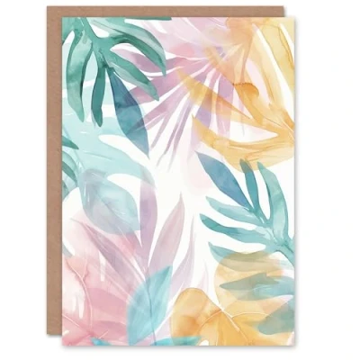 Artery8 Greeting Card Plant Lover Monstera Leaves Colourful Watercolour Blank For All Him Or Her Art Birthday