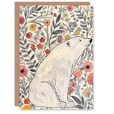 Artery8 Greeting Card Polar Bear Wildflower Pattern Soft Watercolour For Her Woman Birthday