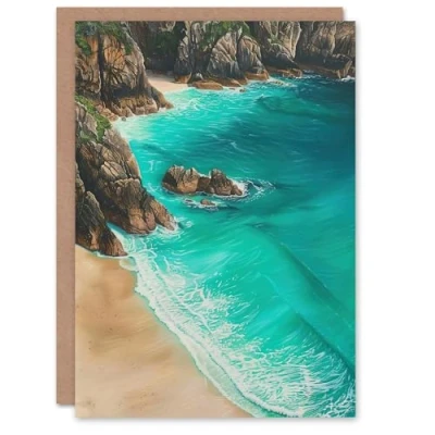 Artery8 Greeting Card Porthcurno Beach Cliffs Aerial View Landscape Blank For All Him Or Her Art Birthday