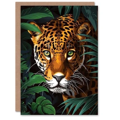 Artery8 Greeting Card Powerful Jaguar Lurking In Jungle Plants Painting For Him Man Birthday