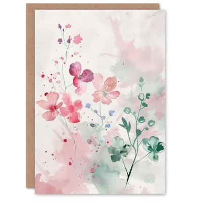 Artery8 Greeting Card Pretty Light Geranium Flowers Pastel Watercolour For Her Woman Birthday