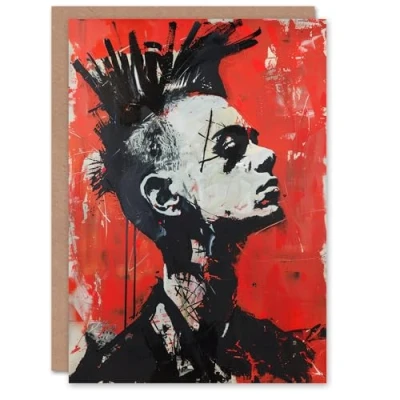 Artery8 Greeting Card Punk Mohawk Modern Portrait Street Art Goth Blank For Him Or Her Birthday