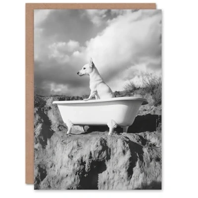Artery8 Greeting Card Puppy in Bathtub Black White Surreal Dog Lover Blank For Him Or Her Art Birthday