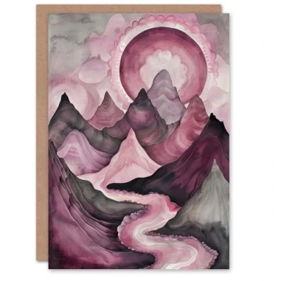Artery8 Greeting Card Purple Fantasy Mountain Path Sunset Watercolour Blank For Him Or Her Art Birthday