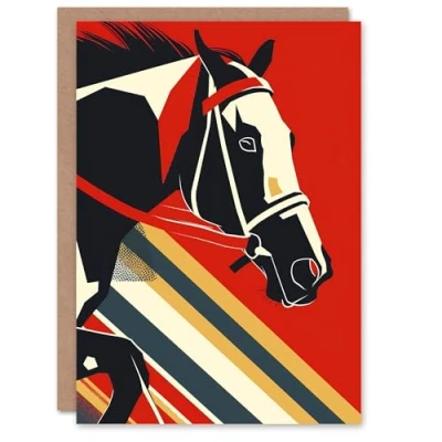 Artery8 Greeting Card Racehorse Animal Racing Horse Bold Geometric Blank For All Him Or Her Art Birthday