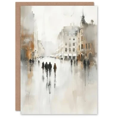 Artery8 Greeting Card Rainy Day in the City Painting Grey Cityscape Blank For Him Or Her Art Birthday