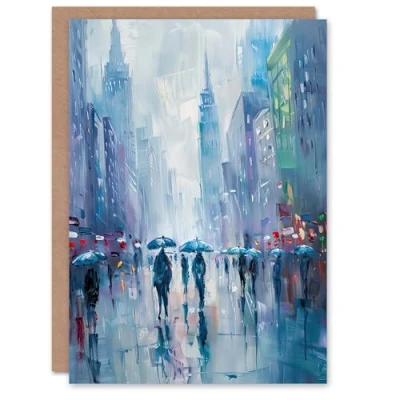 Artery8 Greeting Card Rainy New York Abstract Cityscape Oil Painting Blank For Him Or Her Art Birthday