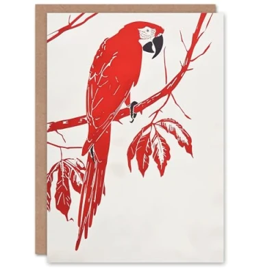 Artery8 Greeting Card Red Scarlet Macaw Parrot Bird on Tree Branch Blank For Him Or Her Art Birthday
