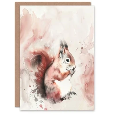 Artery8 Greeting Card Red Squirrel Light Watercolour Portrait Soft Blank For All Him Or Her Art Birthday