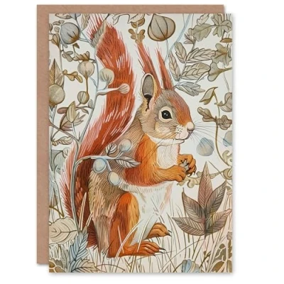 Artery8 Greeting Card Red Squirrel Woodland Forest Floor Bright Blank For All Him Or Her Art Birthday