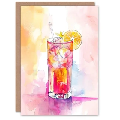 Artery8 Greeting Card Rum Punch Cocktail Pink Orange Watercolour Blank For All Him Or Her Art Birthday