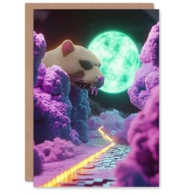 Artery8 Greeting Card Sci Fi Fantasy Landscape Large Rat Neon Moon Blank For Him Or Her Art Birthday