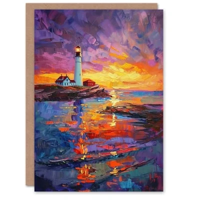 Artery8 Greeting Card Seaside Sunset St Mary's Lighthouse Whitley Bay Blank For Him Or Her Art Birthday