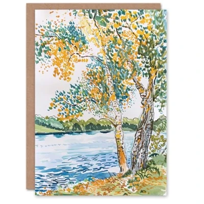 Artery8 Greeting Card Seine Paris River Bank Autumn Tree Watercolour Blank For Him Or Her Art Birthday