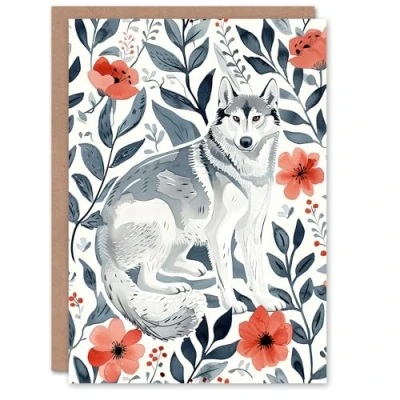 Artery8 Greeting Card Siberian Husky in Poppy Flower Pattern Dog Lover Blank For Him Or Her Art Birthday