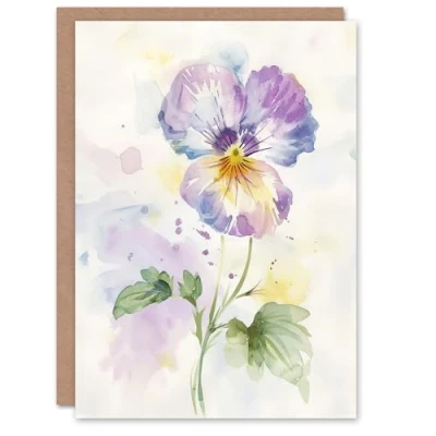 Artery8 Greeting Card Single Purple Pansy Simple Floral Watercolour Blank For Her Woman Birthday