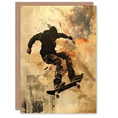 Artery8 Greeting Card Skateboarder Portrait Street Art Modern Blank For Him Or Her Birthday