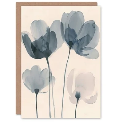 Artery8 Greeting Card Soft Black White Light Watercolour Poppy Flowers Blank For Him Or Her Art Sympathy