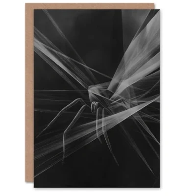 Artery8 Greeting Card Spider Black White Abstract Cubist Web Threads Blank For Him Or Her Art Halloween
