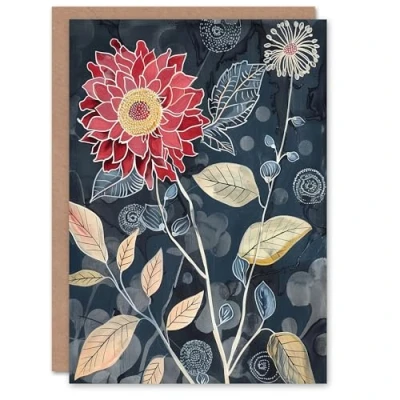 Artery8 Greeting Card Stylised Dahlia Bloom Dark Floral Artwork For Her Woman Birthday