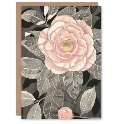 Artery8 Greeting Card Stylised Pink Camellia Flower Pastel Colour For Her Woman Birthday