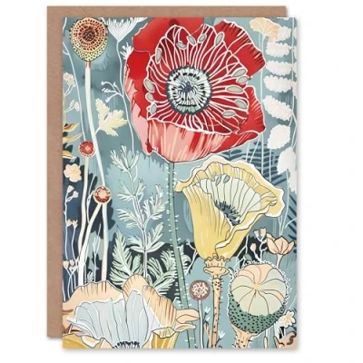 Artery8 Greeting Card Stylised Poppy Flowers Pastel Colour Design Blank For All Him Or Her Art Birthday