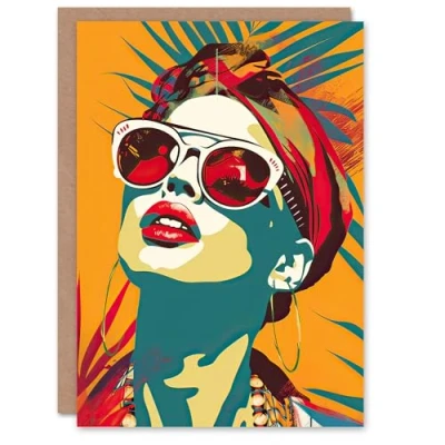 Artery8 Greeting Card Summer Holiday Travel Vibes Colourful Portrait For Her Woman Birthday